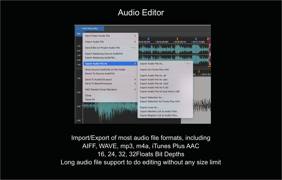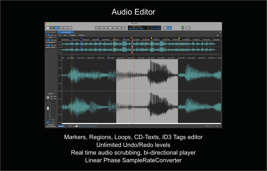 DSP-Quattro Audio File Editor offers a powerful and intuitive interface for professional audio editing on MacOS. It supports a wide range of audio formats and provides advanced tools for precise waveform editing and sound enhancement.