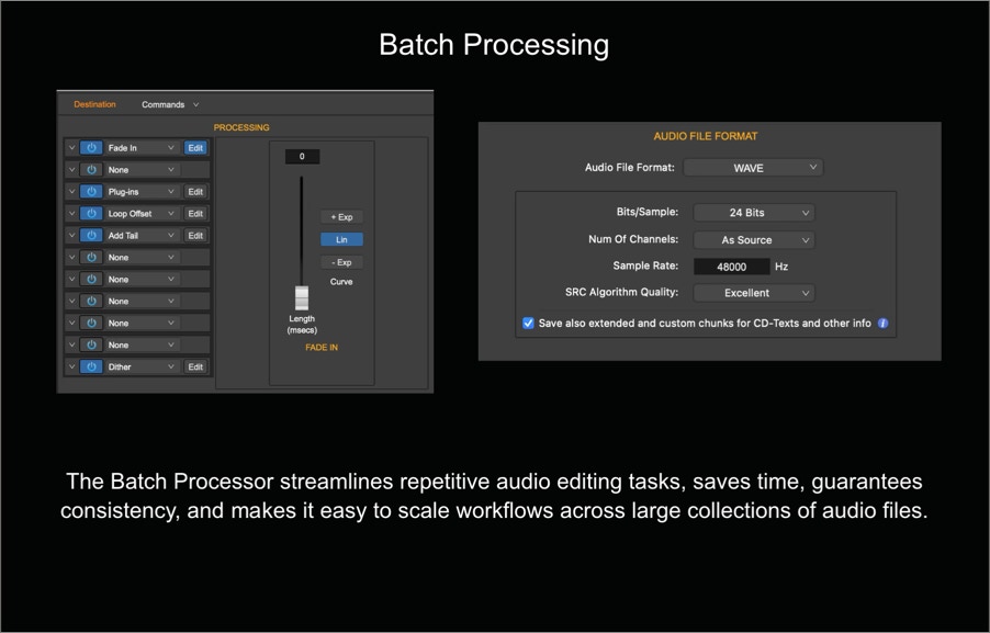 Designed for both beginners and experts, the DSP-Quattro Audio File Editor ensures your sound editing workflow is efficient and productive.