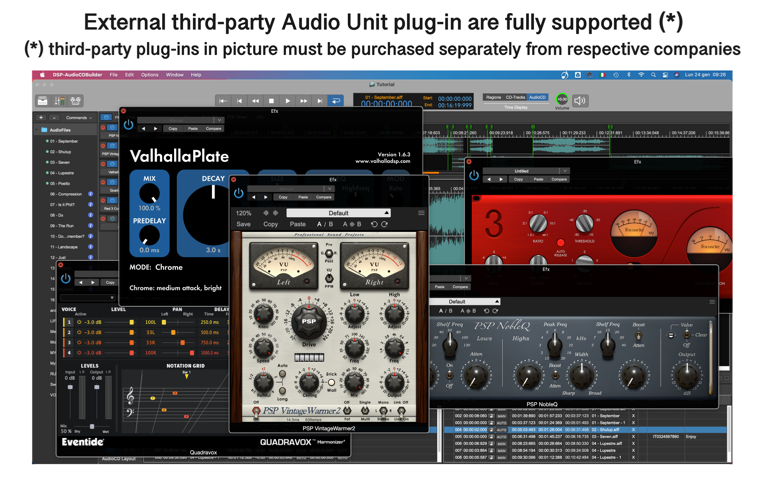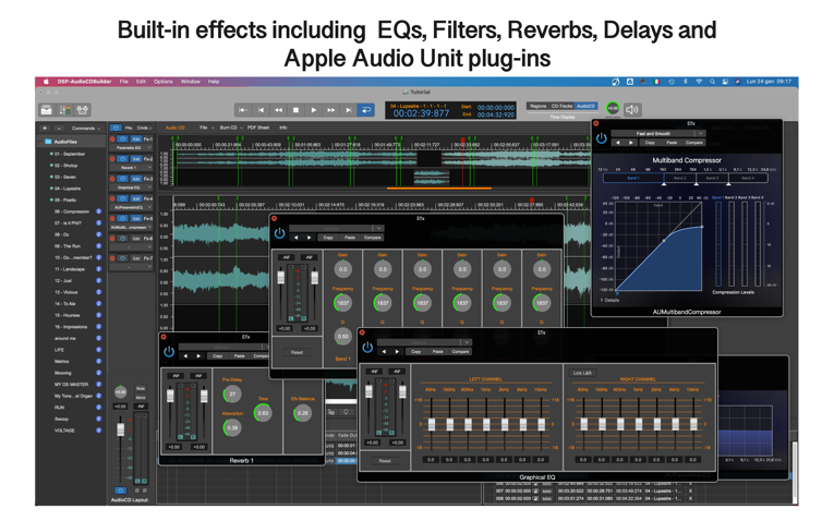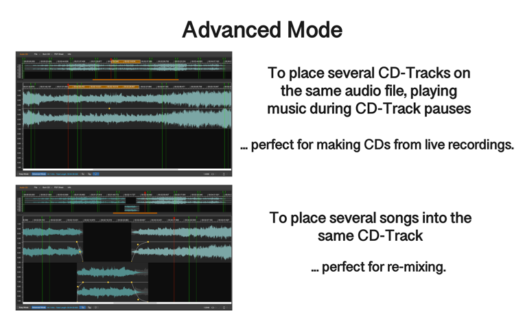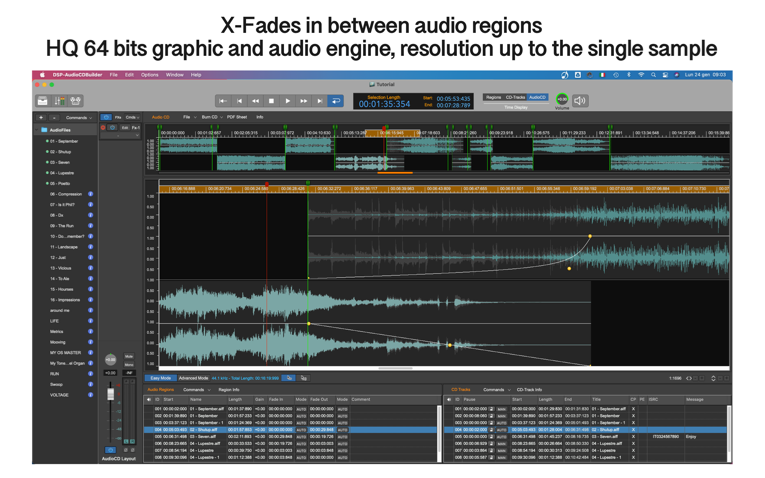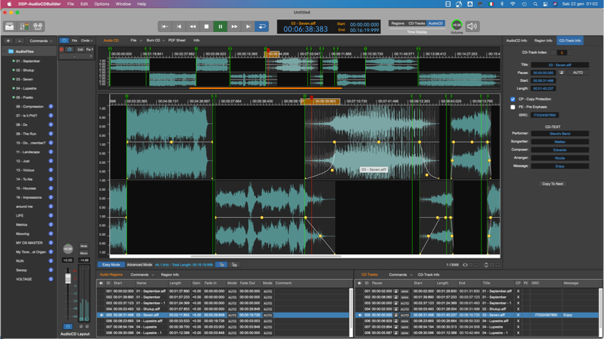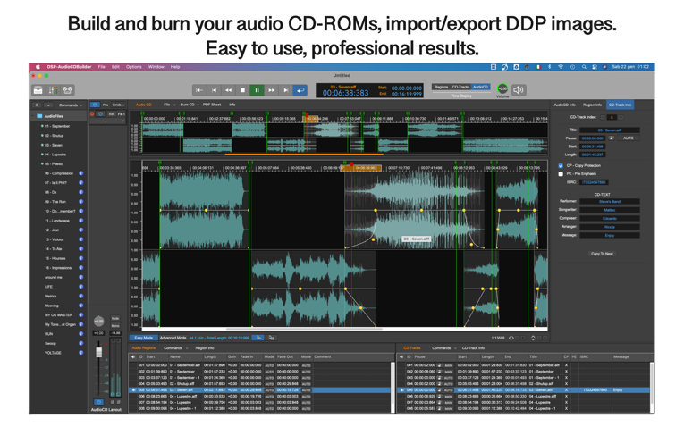 DSP-AudioCDBuilder meets the needs of anyone who wants to do Audio Mastering to apply a finishing touch to your mixes. It’s so easy to use that it’s the perfect tool for the inexperienced musician who wants to master his songs. If used in advanced mode, it’s so powerful that it’s the perfect tool for the experienced professional musician who pretends the state-of-the-art technology doing mastering.